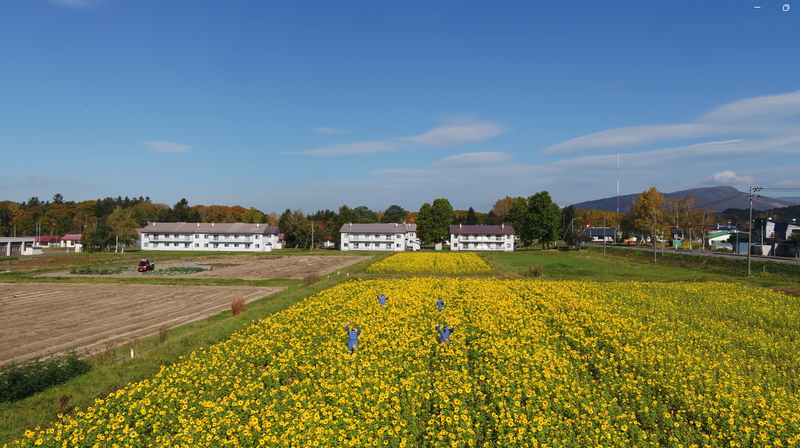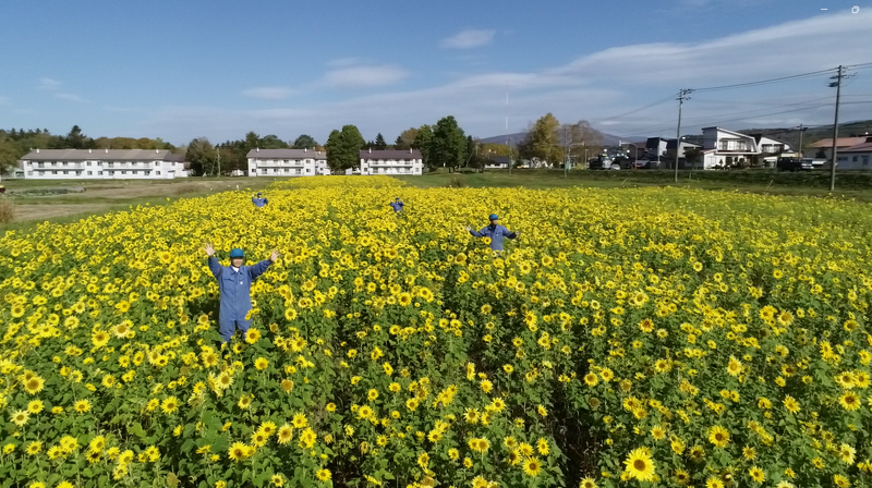 <名農キャンパスのひまわり畑(ドローン撮影)>
